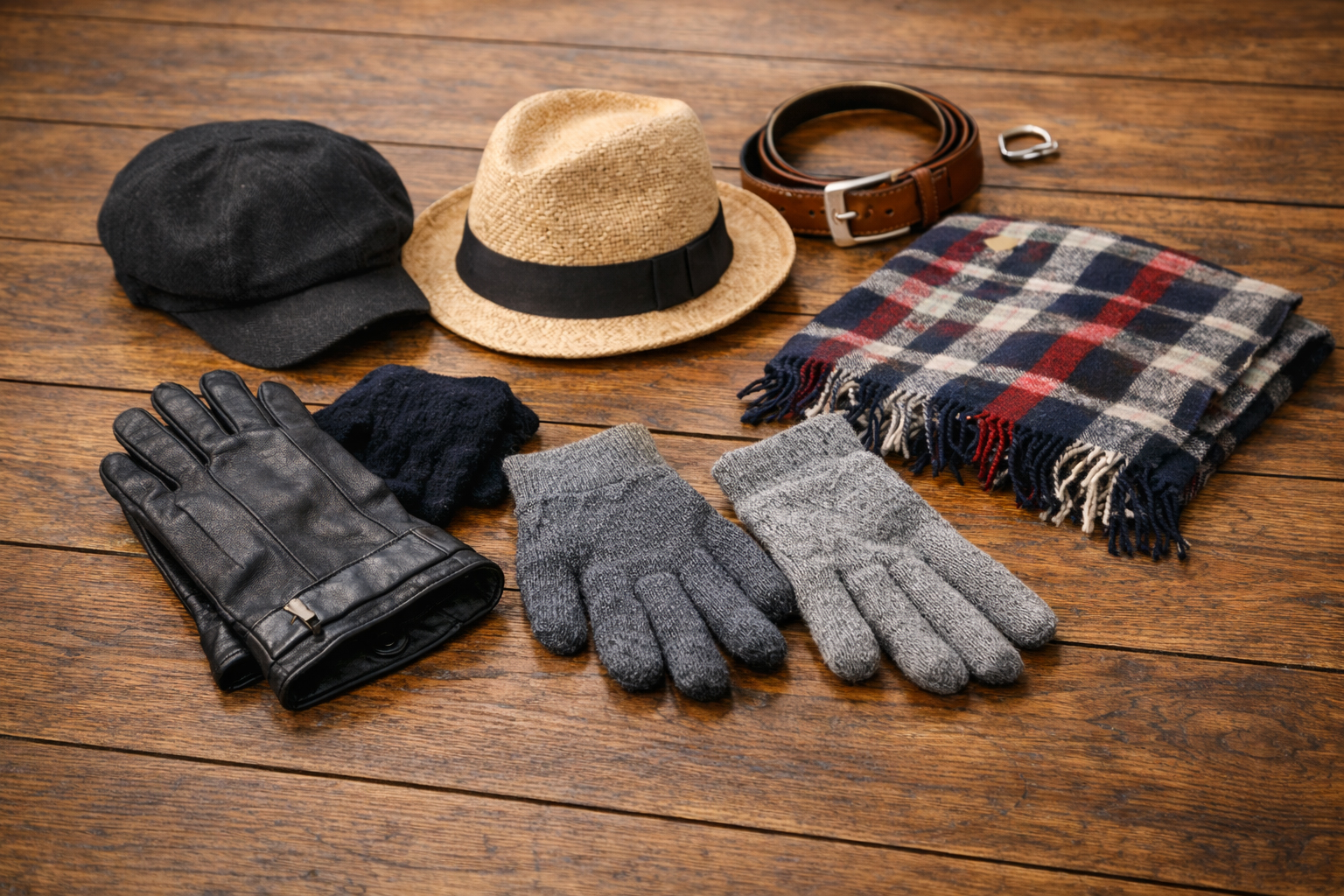 帽子や手袋、ベルトなど、季節によって品ぞろえが変わります。