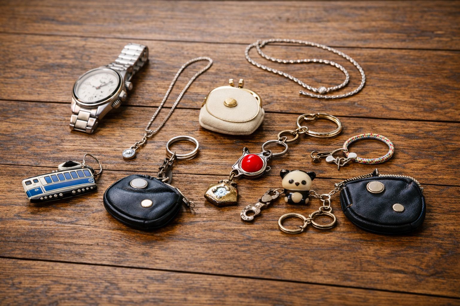 時計やアクセサリー、キーホルダーなどの小物類も取り扱うことがあります。